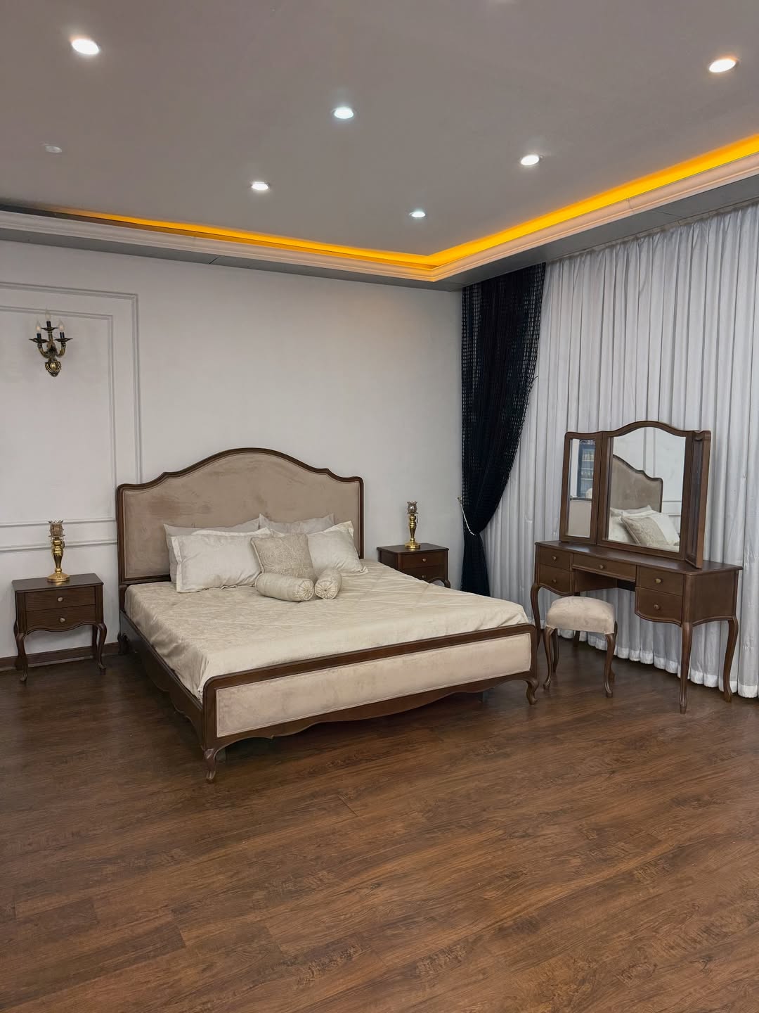یک عدد تخت دونفره، میزآرایش و قاب آیینه، دو عدد پاتختی،صندلی میز آرایش